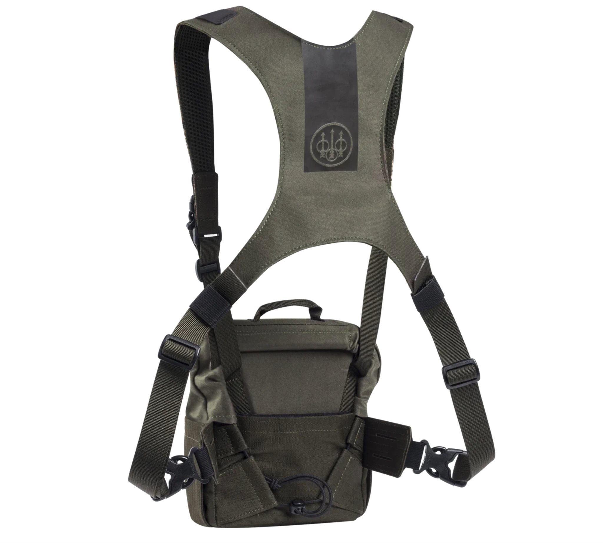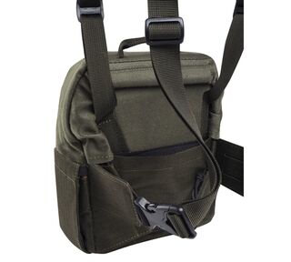 Easy one-hand opening. Laser-cut MOLLE panels on the front, sides and bottom. Safety straps for the binoculars. Shock absorbing EVA inserts. Fitted with an elasticated laser rangefinder pocket with MOLLE interface.