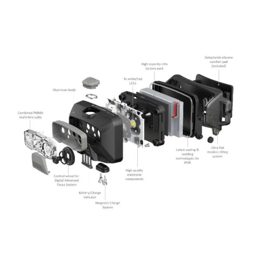 - Uncompromised spatial awareness - Integrated battery position reduces accidental impacts of the headlamp.