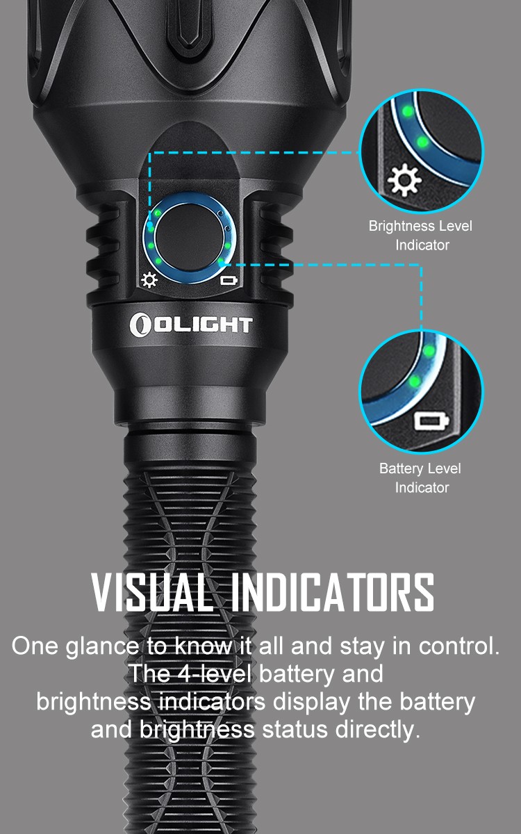 • Visualized Indicators: 4-level battery and brightness level indicators around the side switch which can be read at a single glance.